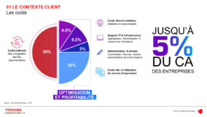 Dresser la liste exhaustive des dépenses contraintes dans une entreprise serait une tâche fastidieuse. Mais il en est une qui passe pour une évidence : l’impression. Entre le coût des plateformes multifonctions et celui des consommables, imprimer des documents semble toujours trop onéreux. On estime que le coût des flux documentaires (directs et indirects, de l’achat des consommables, jusqu’à la gestion des flux) à 5% du CA d’une entreprise ! Mais, au-delà de cette conscience un peu floue du coût de l’impression, il apparaît selon l’étude Alliance Green IT, que 85% des entreprises françaises ne connaissent pas le nombre moyen de pages imprimées par salariés. Par ailleurs, 48% des entreprises françaises n’interdisent pas l’impression des emails et 56% d’entre elles, ne proscrivent pas l’impression de documents nécessitant une lecture de plus de 20 minutes. Une politique d’impression raisonnée, facilite le quotidien des collaborateurs de l’entreprise tout en maîtrisant les dépenses. Ainsi, pourquoi par exemple, ne pas imprimer les documents longs en noir et blanc plutôt qu’en couleur ?